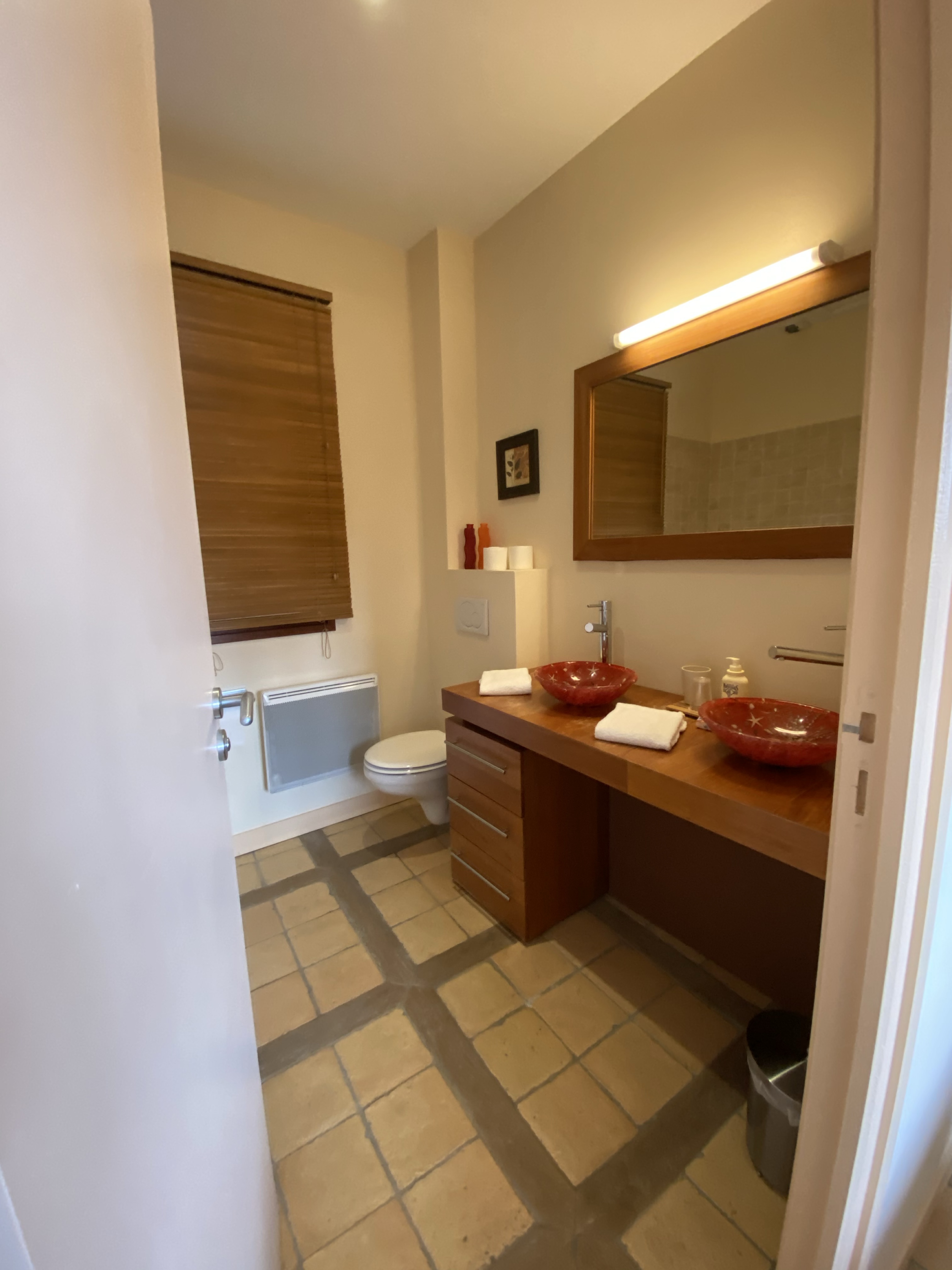 Vous disposez de deux lits jumeaux dans la première et un lit double dans la seconde. Chaque chambre possède sa salle de bain privative, ses toilettes, sa télévision à écran plat avec canal+, wi-fi gratuit, bouilloire avec boissons chaudes.